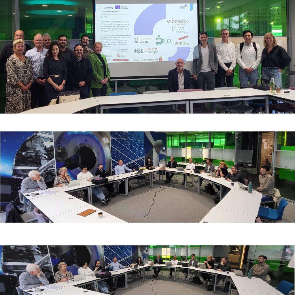 Im ersten Quartal 2025 reichte V-tron im Namen eines schlagkräftigen Konsortiums erfolgreich einen Antrag bei Interreg Deutschland-Nederland für das Projekt FLEX ein. Dieses Konsortium besteht aus sechs Kernpartnern: Provinz Groningen, Gemeinde Helmond, Landkreis Vechta, Private Hochschule für Wirtschaft und Technik (PHWT), HAN University of Applied Sciences und V-tron BV. Sie werden von einem breiten Netzwerk von assoziierten Partnern unterstützt, darunter ÖPNV-Anbieter und ÖPNV-Nutzer, die die Diversität der Beteiligten widerspiegeln.